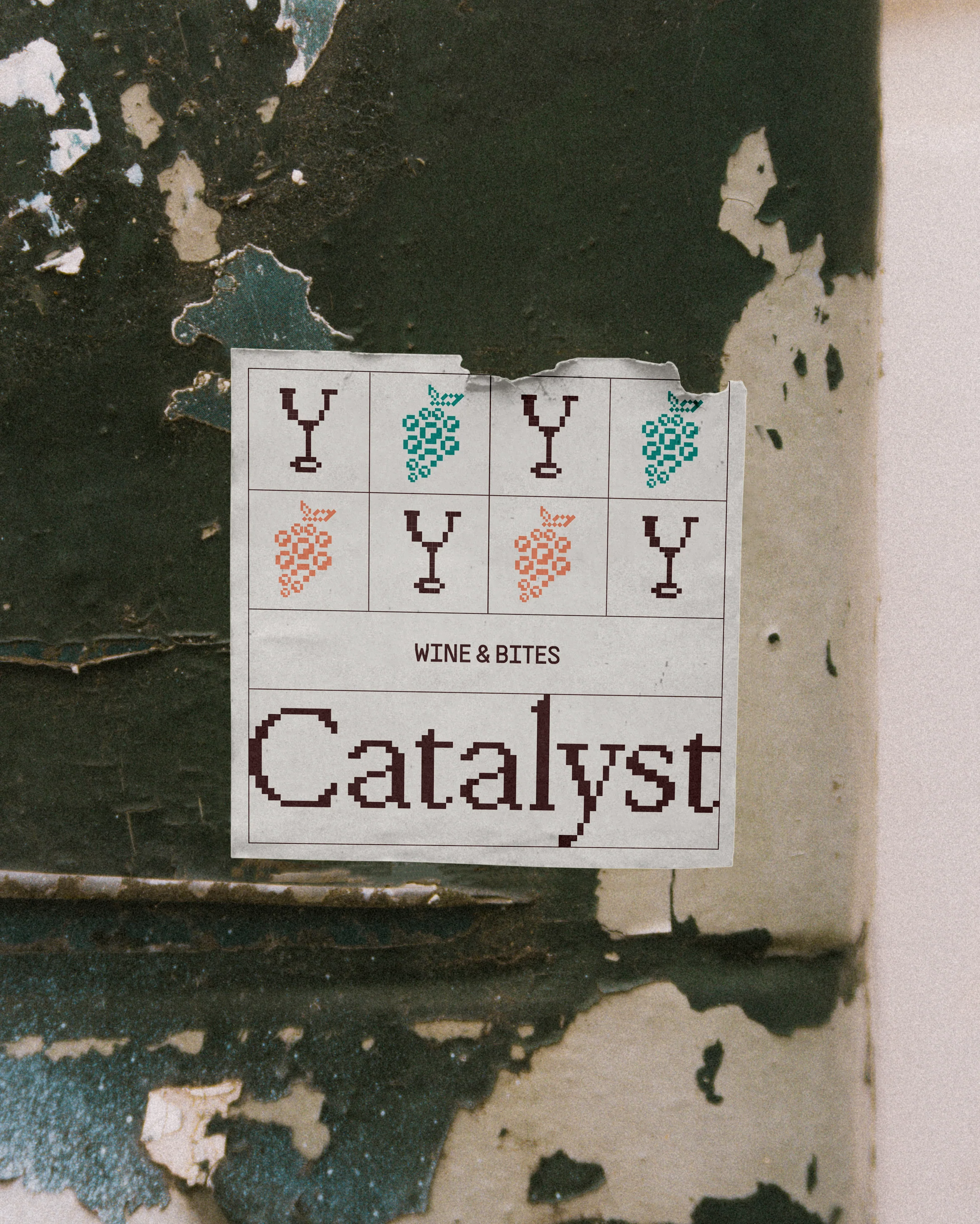 Or Catalyst Wines. The pixelated style becomes the identity. It doesn’t matter exactly what’s shown — as long as it follows that same visual logic, it’s recognisable. The “logo” is less of a fixed mark and more of a way of building things.